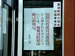 ![]() 避難所に掲示されているポスター けれどもう安心して仮設に移れます |