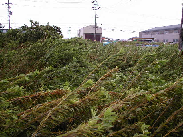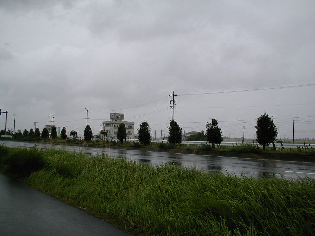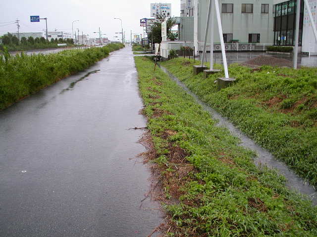 国道23の側道。右の排水路はもうすぐあふれるはず |