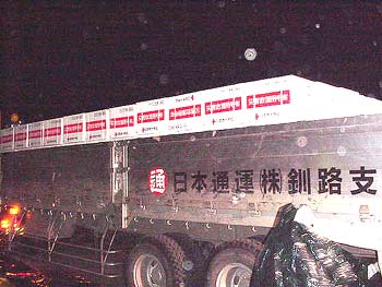 11tの大型トラックで毛布到着!