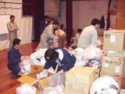 深夜まで続く支援物資の仕分け作業