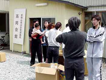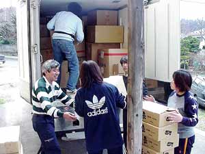 | 高岡避難所にて | さー、どんどんおろそうぜ | とにかく1,5トンはすごかった |