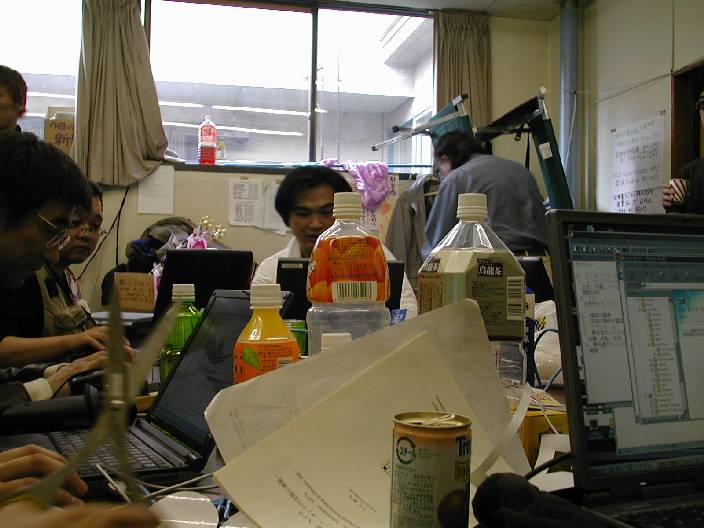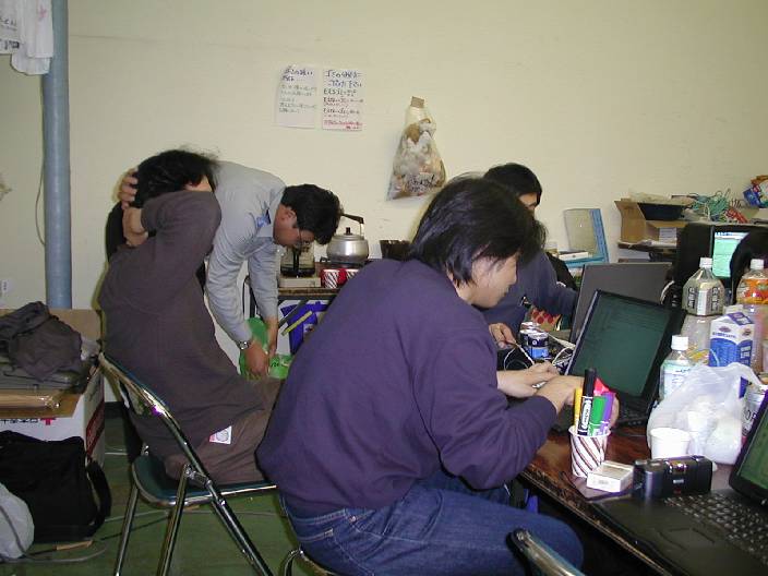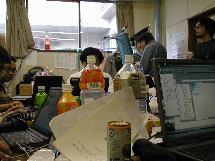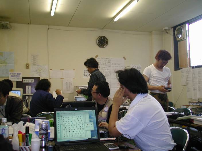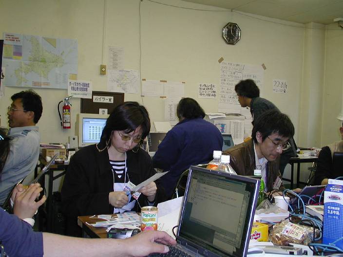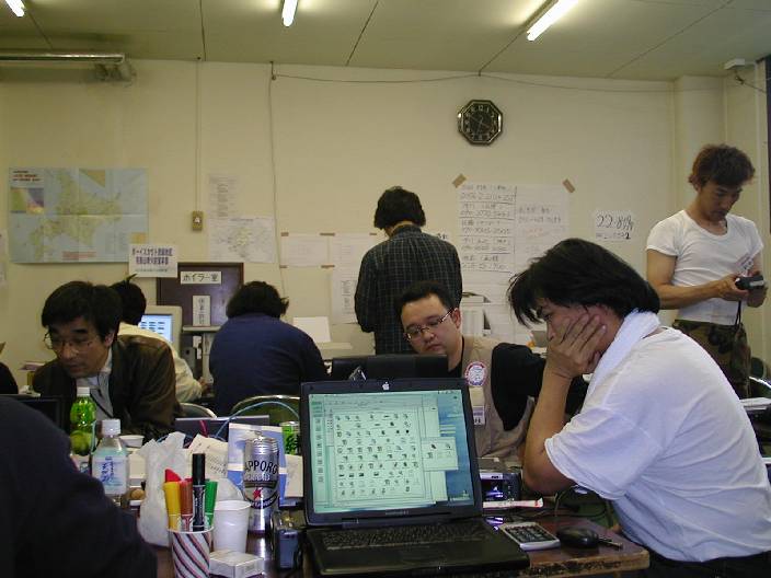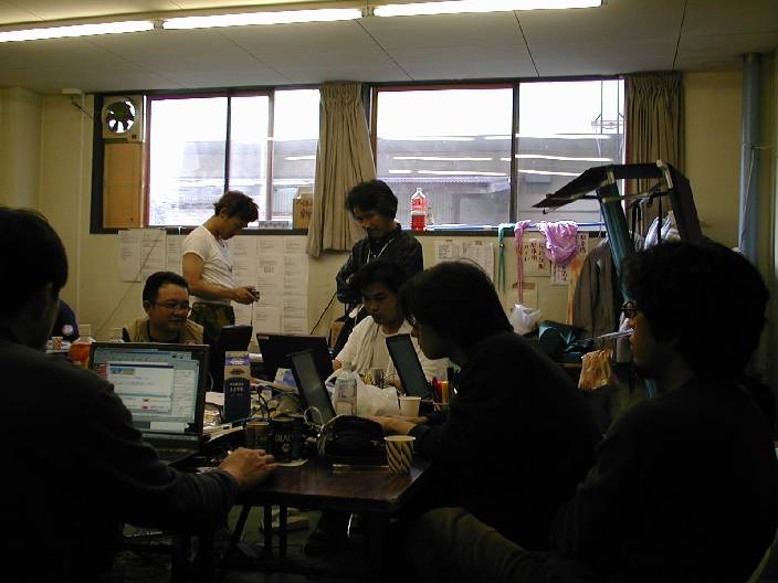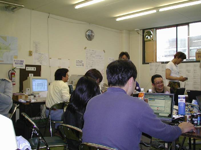 「うすこいプロジェクト」の駆け込み応募の処理に忙しい、うすこい班と明日の準備に忙しい、お助け隊。サーバの準備に忙しい、管理者など、有象無象が結集した、マフィアの巣窟である。