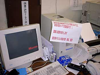 ボーイの雲津委員長に絡まれる冨田。 | 冨田のパソコン。散らかっています。 |