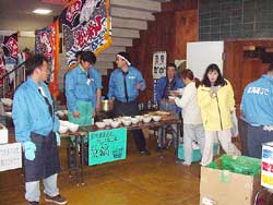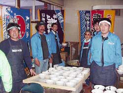 | 会場では浜鍋無料で配られた | 伊達漁協青年部のメンバー | ヤキイカもヤキトリもヤキソバ無料 |