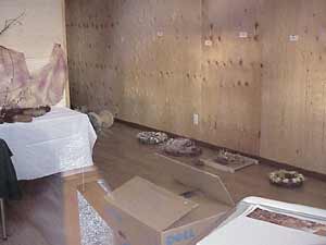 作品展会場に散乱する生徒の作品